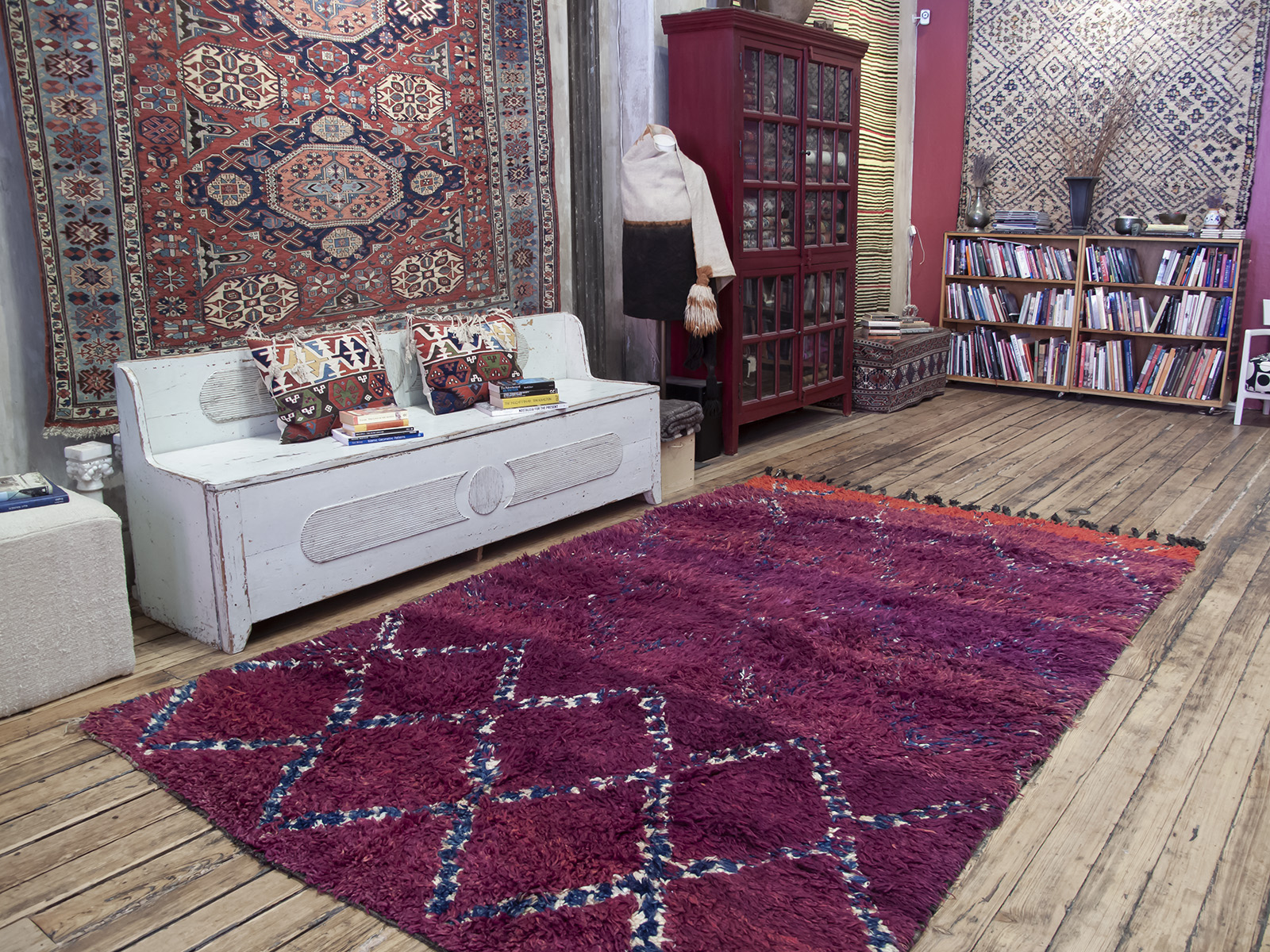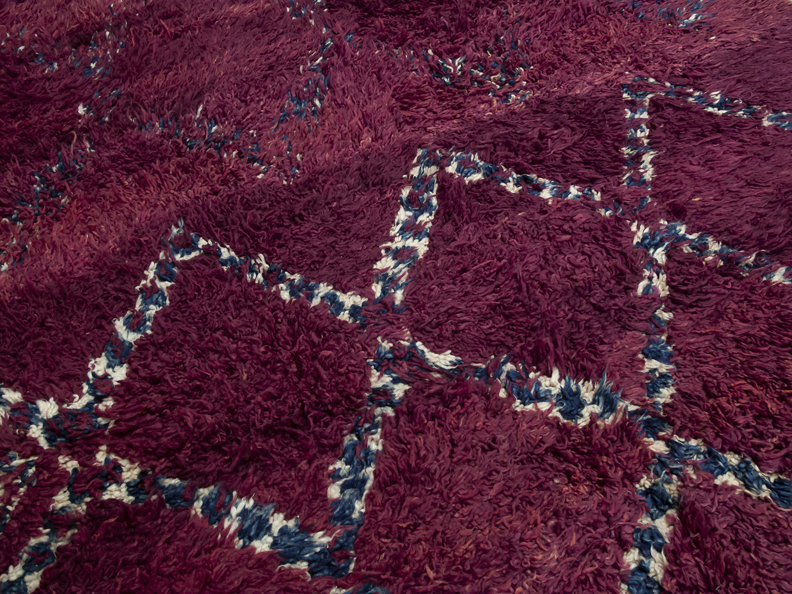 A fantastic old Berber rug, attributed to the Ait Sgougou or possibly the Beni Mguild tribes in the western Middle Atlas mountains. Calm, clear and unusually old example with significant amount of old indigo that has not been available any more in the region after the 1950s. A rare find.