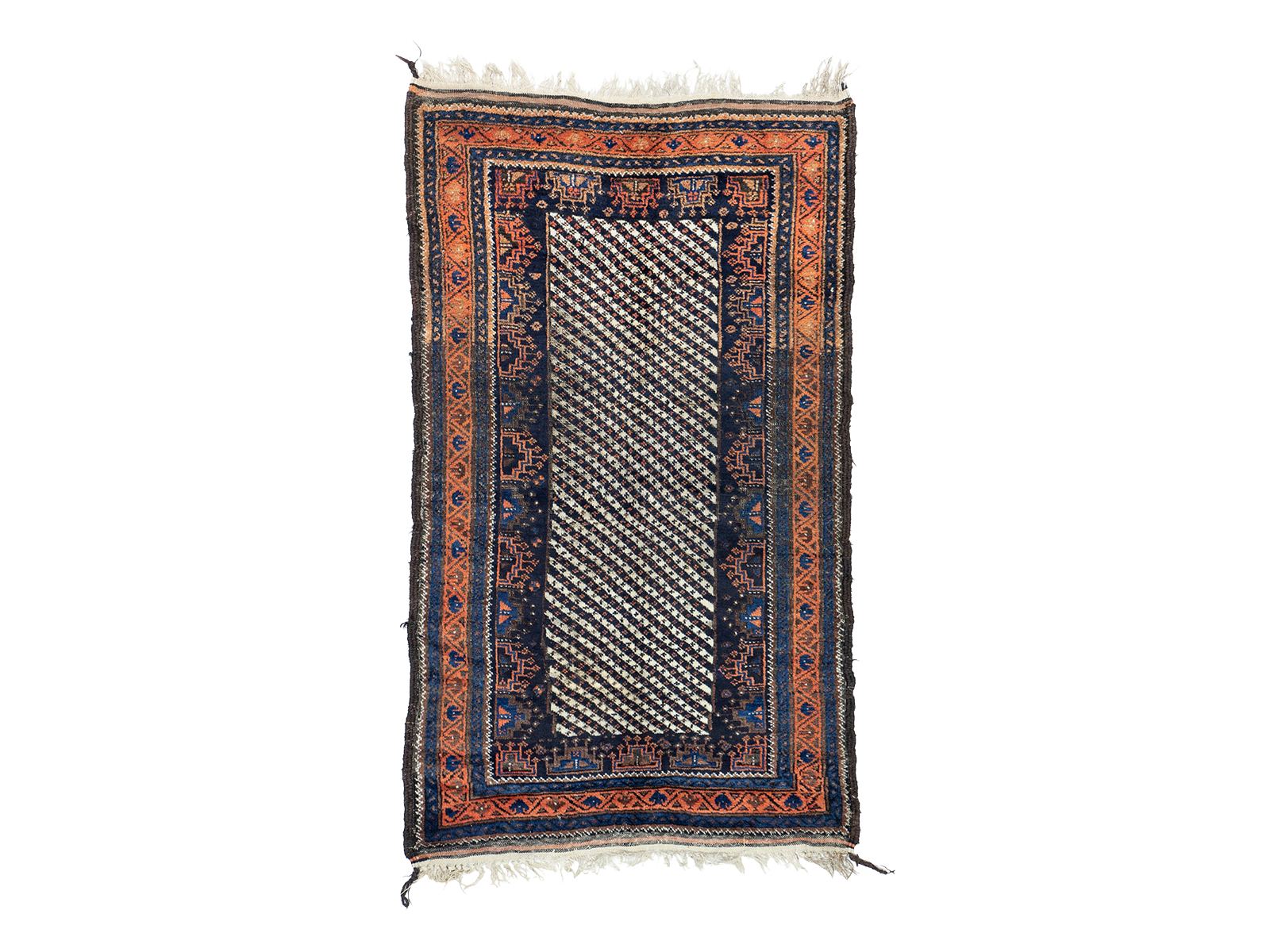 A lovely antique rug, attributed to the Arab Baluch tribes of the Qainat region in Eastern Iran. Wonderful patina with the softest wool that feel like silk.