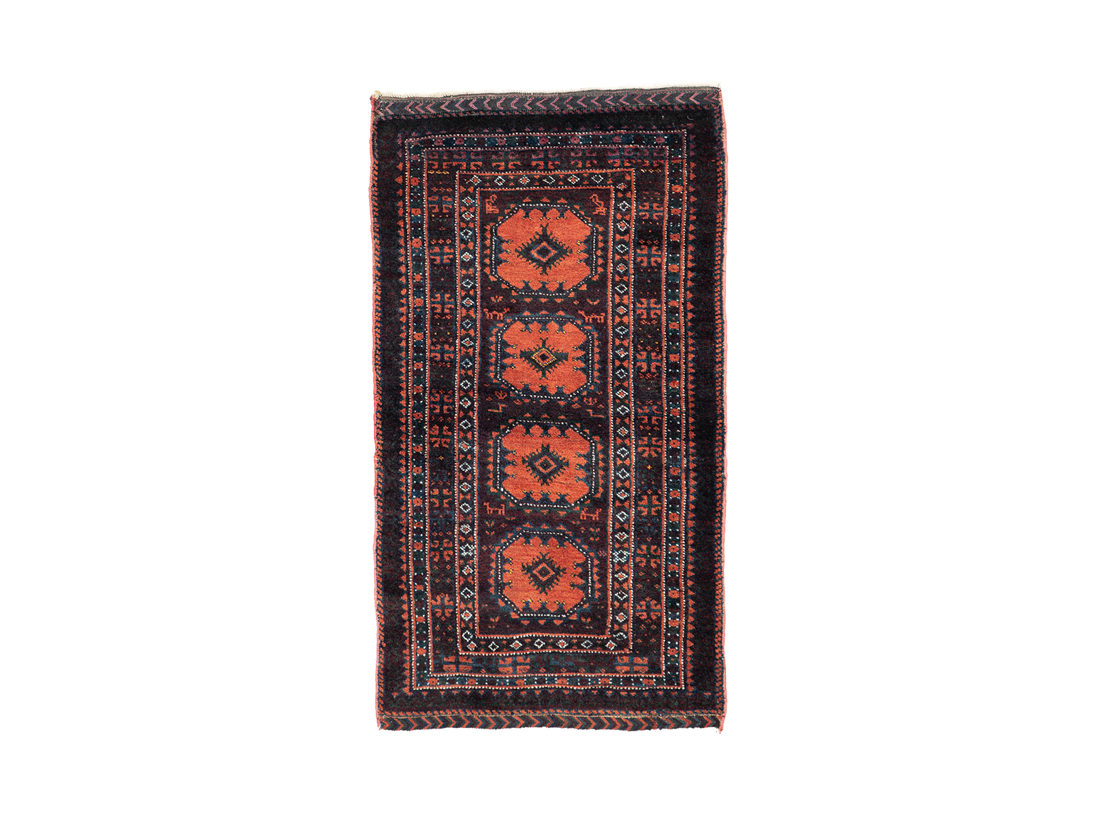 A small antique rug, originally intended as a cushion cover, woven by the Baluch tribes along the Persian-Afghan borders. A lovely example.